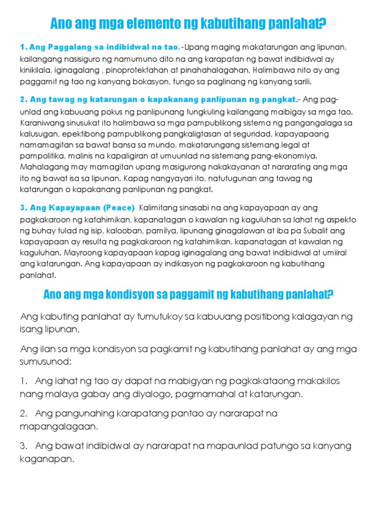 Ano Ang Mga Elemento Ng Kabutihang Panla
